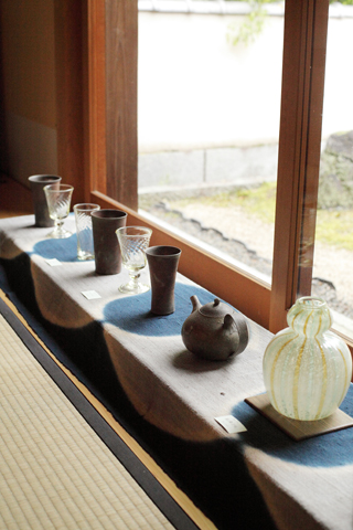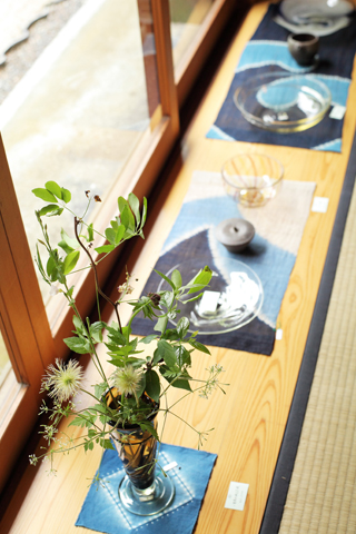 木、染め、陶器、ガラス……異なる素材が意外にもしっくりと引き立てあって 茶室が美しくモノであふれました。連日たくさんのご来店ありがとうございました。
